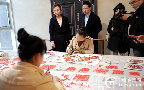 文物馆邀请的民间艺术家现场剪纸、绘画。(中国台湾网 李杰 摄)