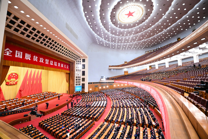 2021年2月25日,全国脱贫攻坚总结表彰大会在北京人民大会堂隆重举行。新华社记者 李响 摄