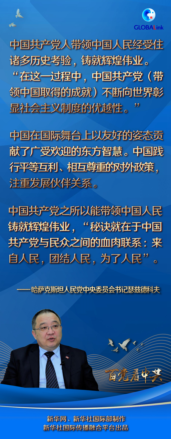 全球连线|中国共产党的实践不断向世界彰显社会主义制度的优越性——哈萨克斯坦人民党中央委员会书记瑟兹德科夫谈中共百年