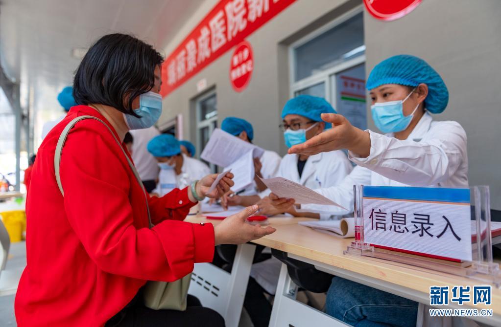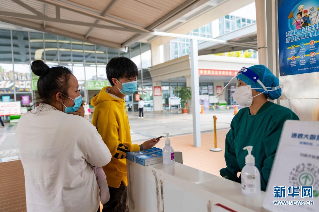 4月1日,人们在瑞丽市景成医院新冠疫苗接种点咨询接种事宜。