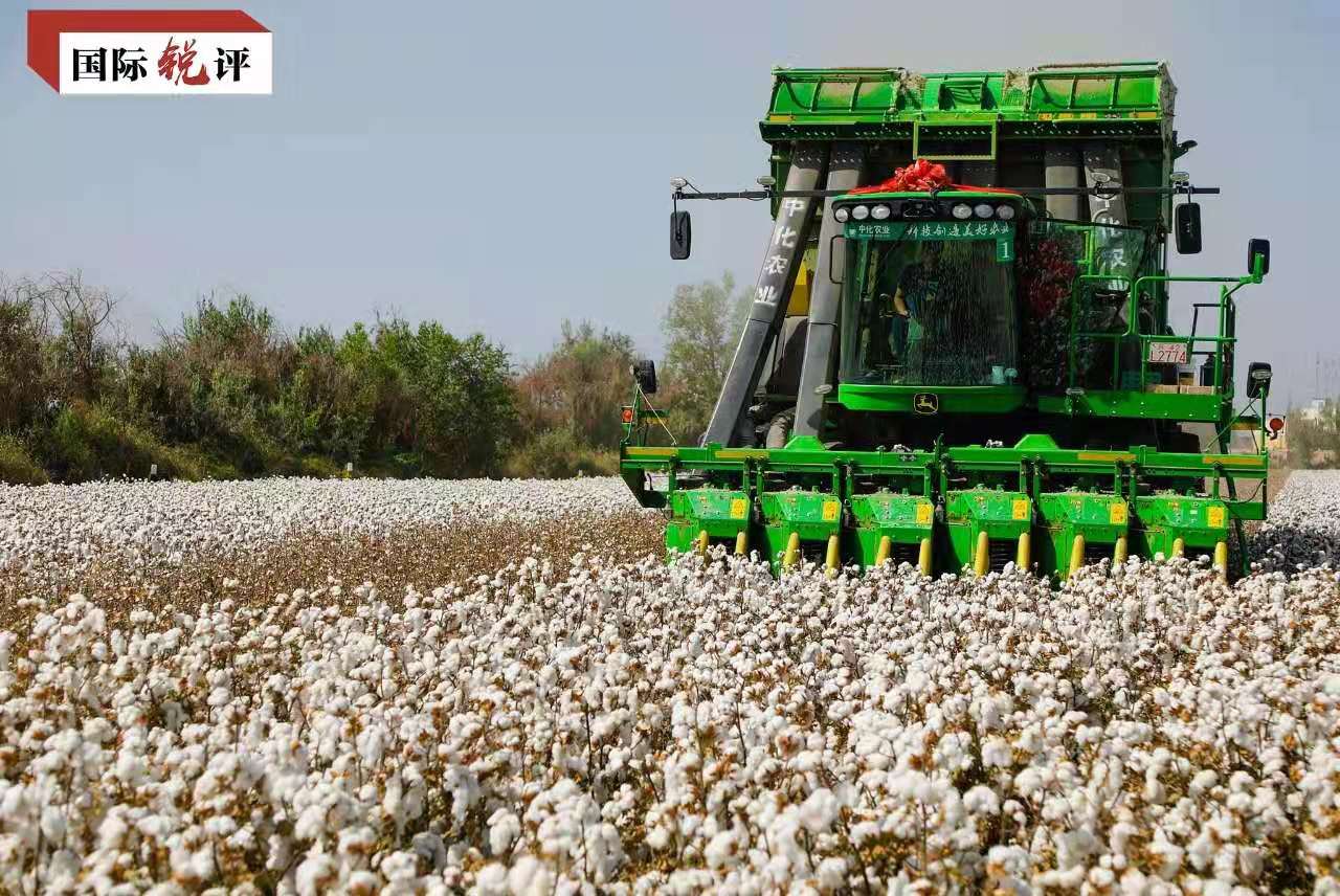 这几天,大型采棉机在中国新疆广阔棉田里工作的视频走红网络。这是对所谓新疆采棉业存在“强迫劳动”谣言的最有力回击。那些盲目跟风抵制新疆棉花的企业,应当擦亮眼睛、明辨是非,不要沦为美西方反华势力的政治工具。
