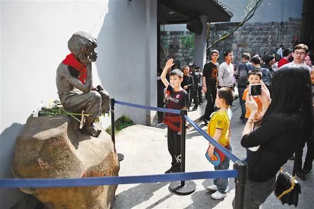 白公馆景区,一名孩子向小萝卜头雕像敬礼。首席记者 谢智强 摄 图:新华网