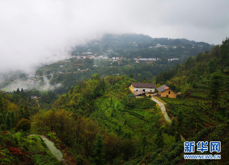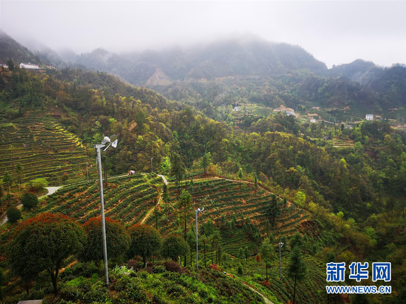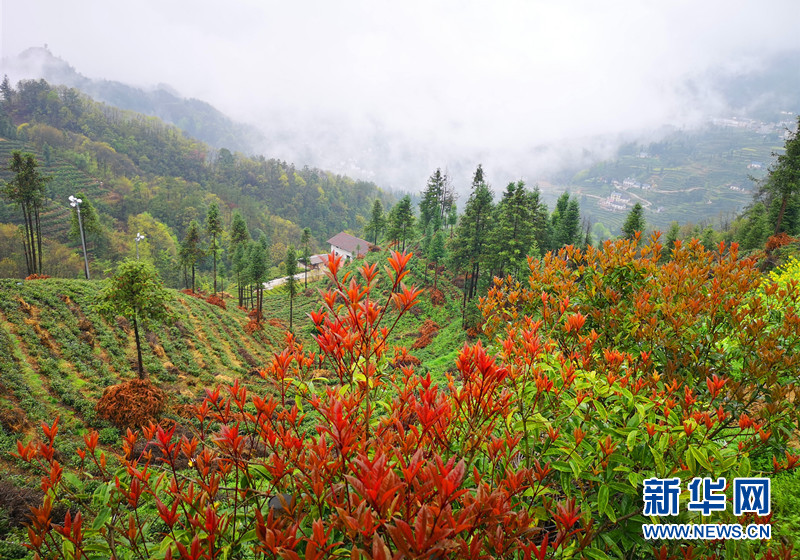 四月,三峡茶旅小镇万亩茶园吐新绿,云雾缭绕美不胜收。新华网 张潘 摄