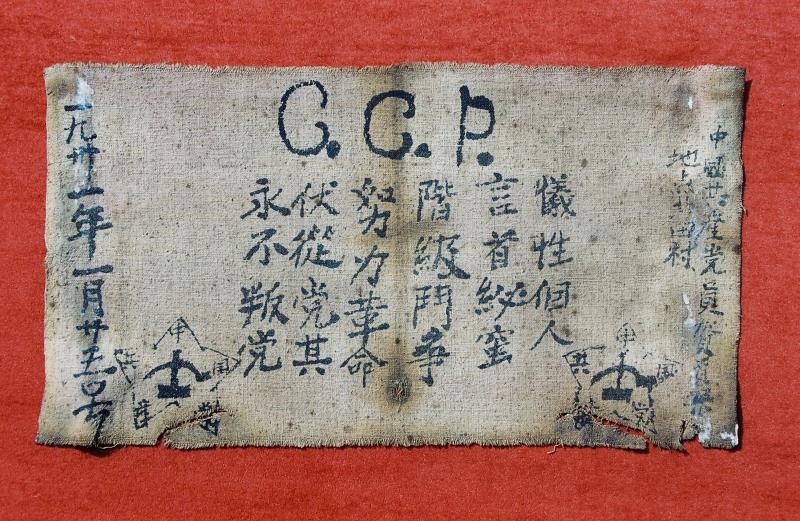 在这份24个字的入党誓词中,有6个错别字格外引人注目。中共永新县委史志办主任彭朝胜介绍,由于条件有限,当时,只准备了一块红布,入党介绍人发现有错别字,要再写也没有布了,所以就将错就错,就把这个作为入党宣誓书的誓词。