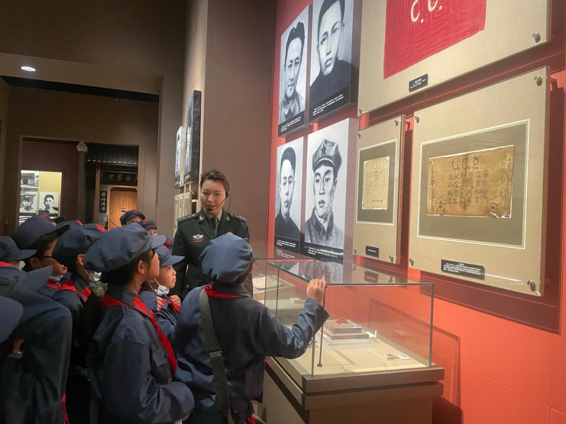 △尹龙乔丹在井冈山博物馆向小学生讲解贺页朵当年的革命故事