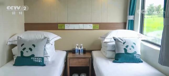 这辆由绿皮车改造的“熊猫专列”旅游列车,内外装饰都按照“熊猫”主题元素统一设计,不仅配备独立卫生间、恒温淋浴,还在全车设置了方便老人、小孩的“一键呼叫”安全按钮。
