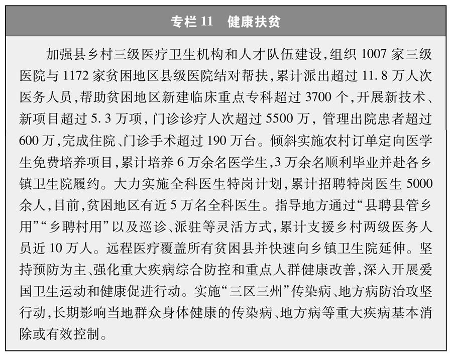 深度贫困地区是贫中之贫、坚中之坚。通过脱贫攻坚,“三区三州”⑨等深度贫困地区突出问题得到根本解决,基础设施和公共服务水平显著提升,特色主导产业加快发展,社会文明程度明显提高,区域性整体贫困问题彻底解决(专栏4)。