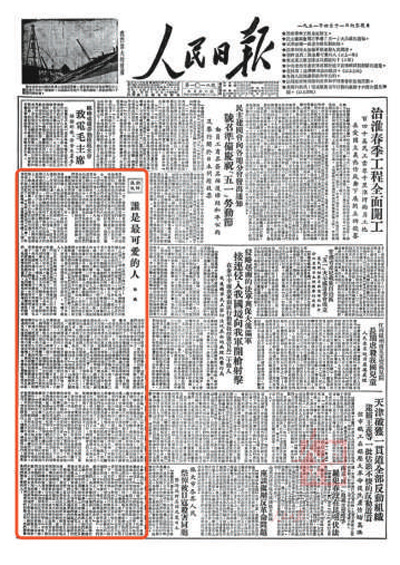 图为1951年4月11日,《谁是最可爱的人》首发于人民日报头版。