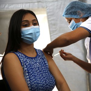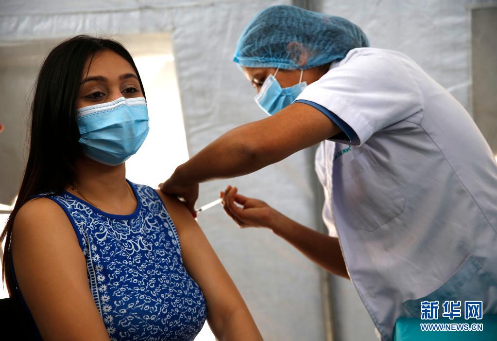 4月7日,在尼泊尔加德满都一家医院,一位女子正在接种新冠疫苗。新华社发(苏拉韦·什雷斯塔 摄)
