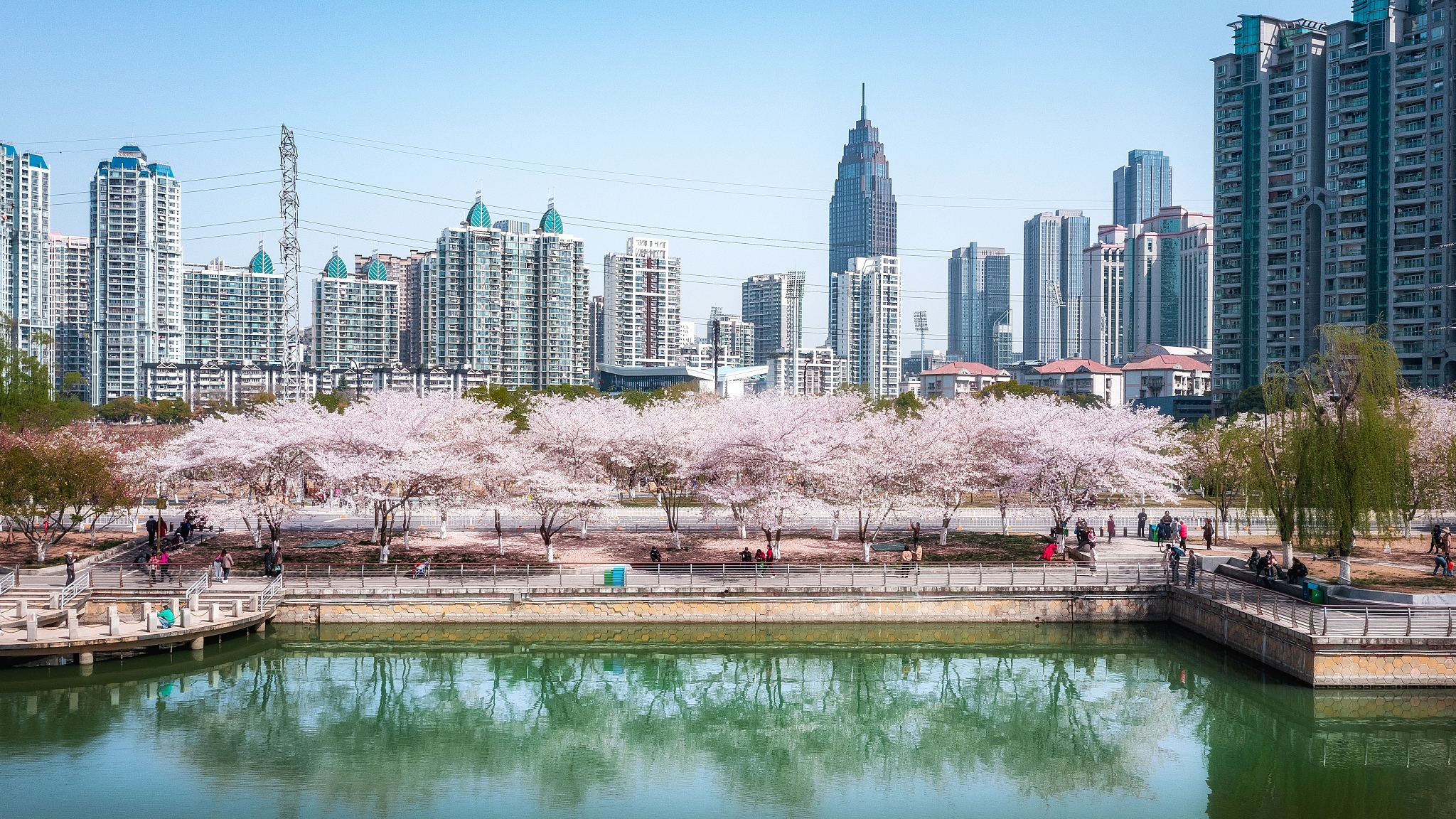 2021年3月24日,武汉,西北湖旁的樱花花开正盛(图片来源:CFP)