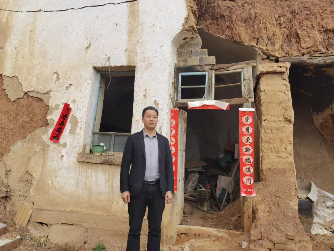 △张俊成在儿时住过的土窑前(马晓媛/摄)