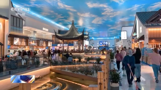 服务区总建筑面积近5万平米,目前全国第一。屋顶是一块7000平米的人工天幕,呈现出逼真的蓝天白云3D效果;加上穹顶之下的小桥流水、江南风韵,难怪有“不入苏州城,尽揽姑苏景”的雅闻。