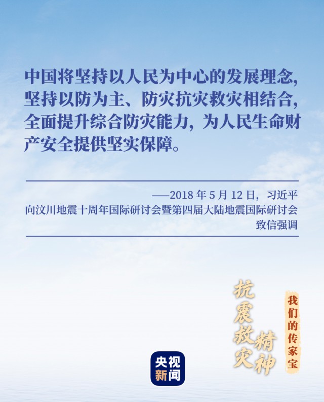 “同自然灾害抗争是人类生存发展的永恒课题。”习近平指出,要坚持“以防为主、防抗救相结合”方针,建立健全各项防治管理体系,全面提升综合防灾能力。