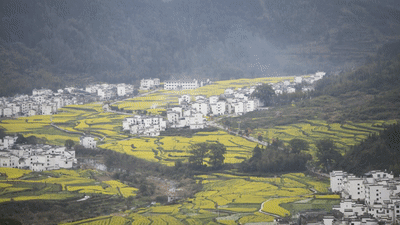 村子里,白墙青瓦的徽式农家建筑坐落于山水之间