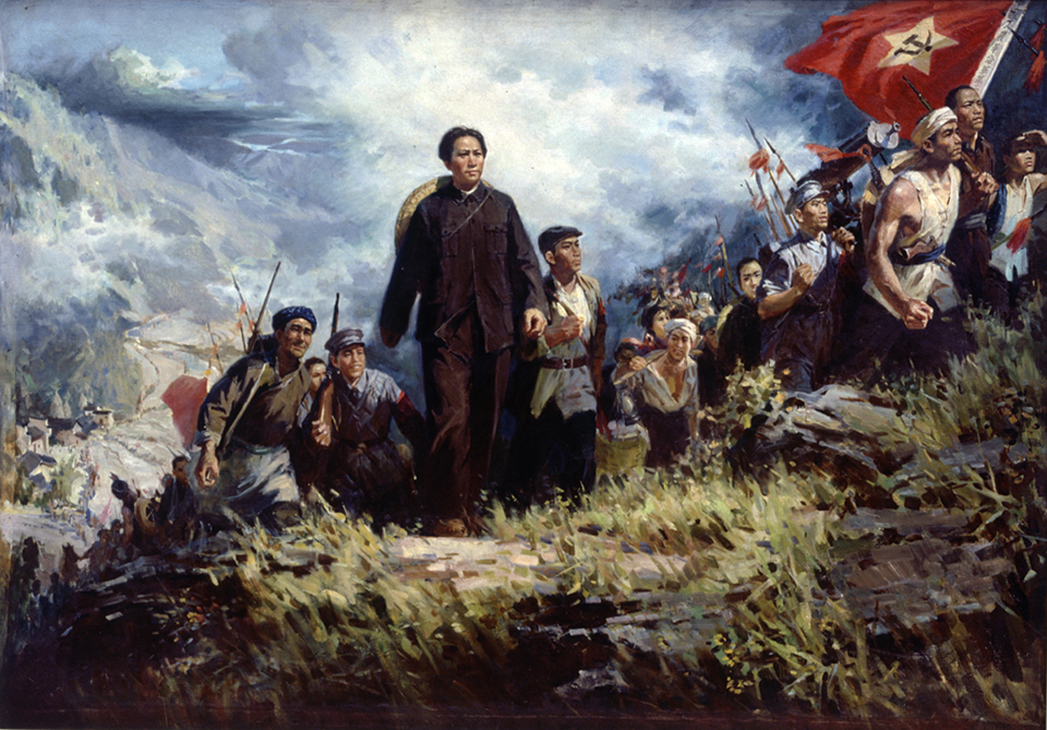 (油画《向井冈山进军》,作者:招炽挺、赵淑钦、王孝柏,中国人民革命军事博物馆藏)