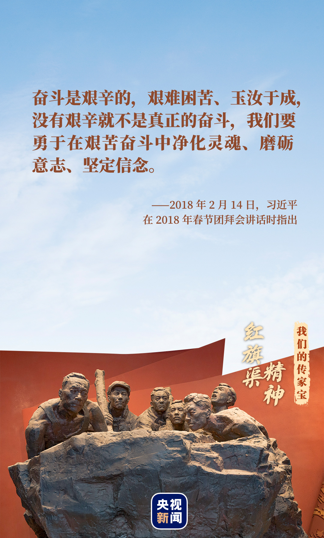 历久弥新的红旗渠精神镌刻在每一块太行山石上,融入每一滴红旗渠水中。这面精神旗帜,汇聚起强大的正能量,激励着中国人民在追梦路上奋勇前行。
