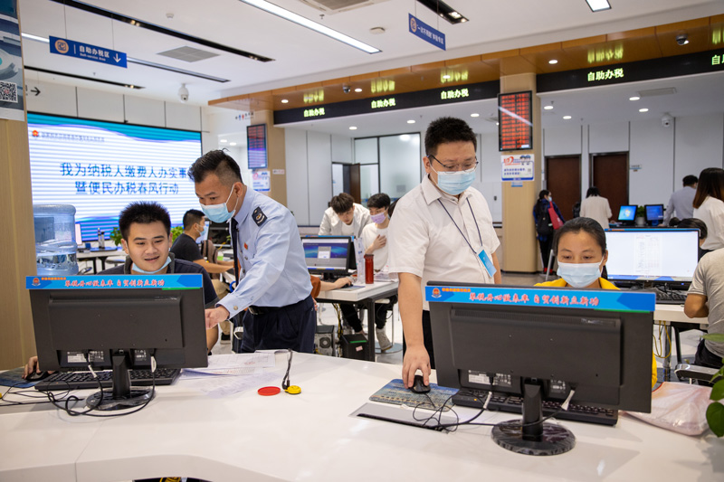 4月15日,珠海横琴办税服务厅,工作人员协助市民申报业务。人民日报记者 张武军摄