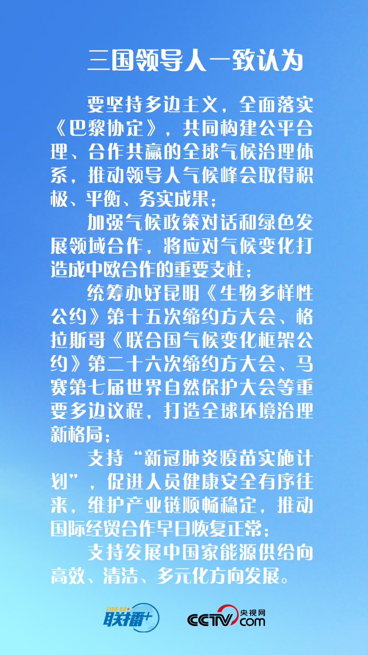 在同法国德国领导人举行视频峰会时,习近平主席作出了哪些“中国承诺”,提出了哪些“中国主张”,央视网《联播+》特梳理习近平主席讲话,与您一起学习领会。