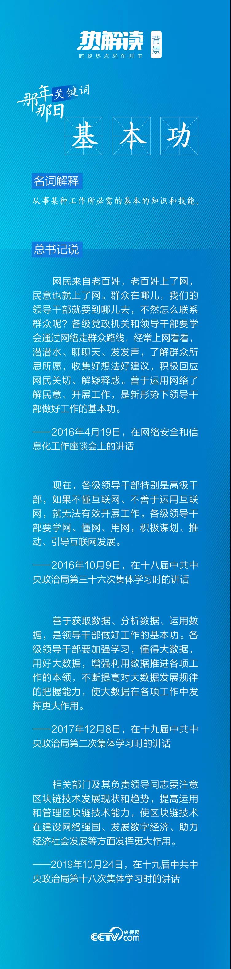 本文关注到,这次重要讲话中所提的“基本功”,之后总书记又多次提及,并反复强调互联网时代领导干部“运用网络”的重要意义。