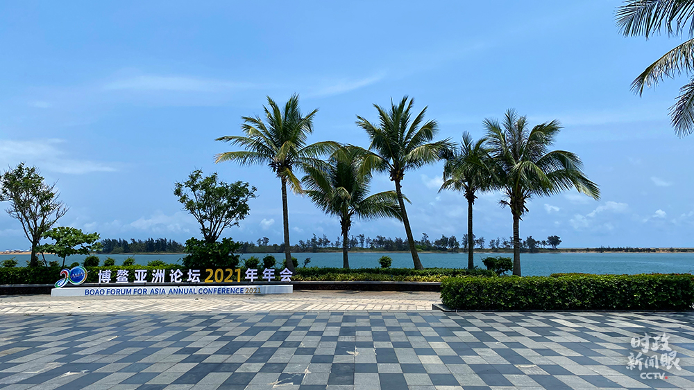 △博鳌亚洲论坛2021年年会新闻中心室外,椰风海韵。(总台央视记者耿旭菲拍摄)