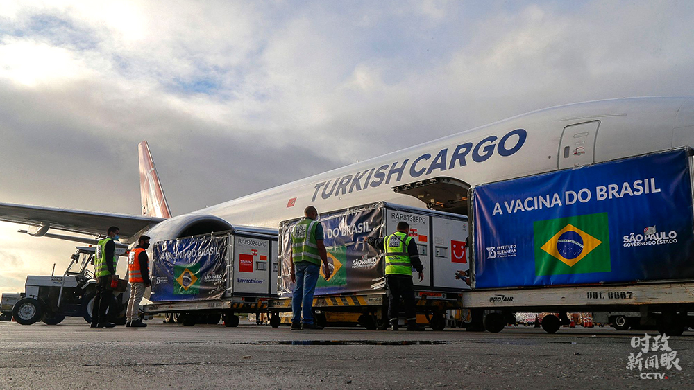 △4月19日,新一批中国新冠疫苗活性成分运抵巴西圣保罗的国际机场。(图/视觉中国)