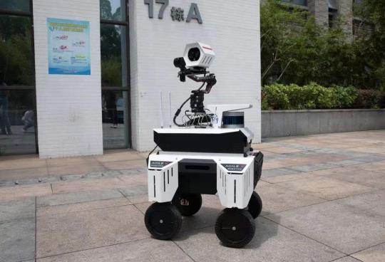 一台无人巡检车正在行驶。该巡检车应用低速无人驾驶技术,可用于工厂自动监测电线、管道、仪表盘等的运行情况。人民日报记者 朱笑熺、朱瑛琪摄