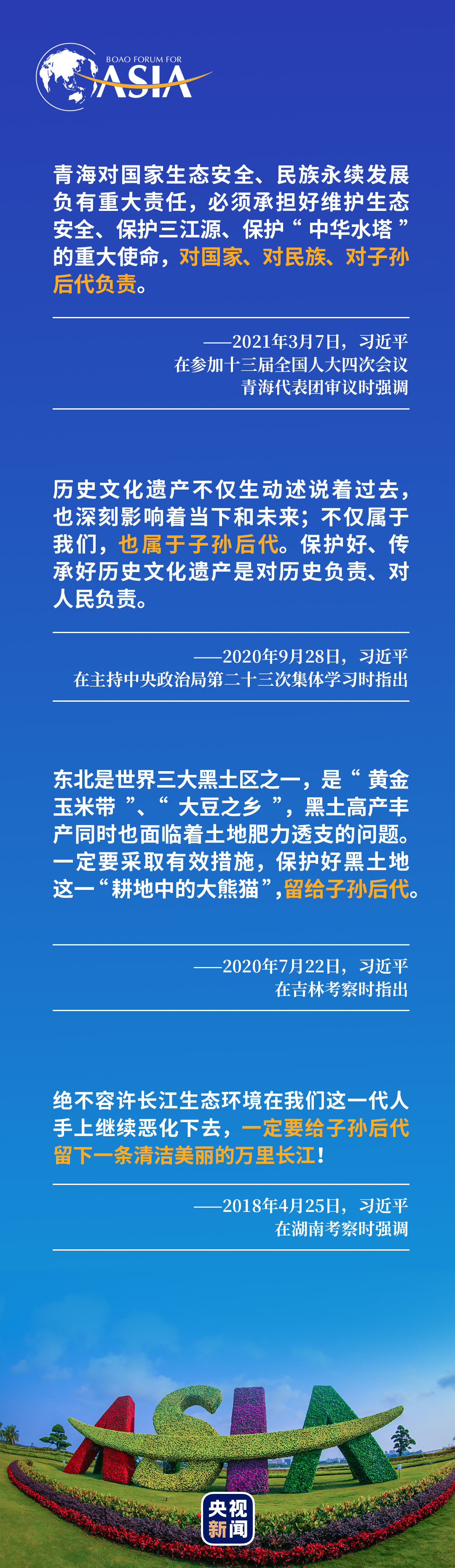 为“子孙后代”计,创造人类更加美好的未来,习近平一直有着深邃的思考,就像他在2019年出访意大利时说的—— “我们对于时间的理解,不是以十年、百年为计,而是以百年、千年为计。”