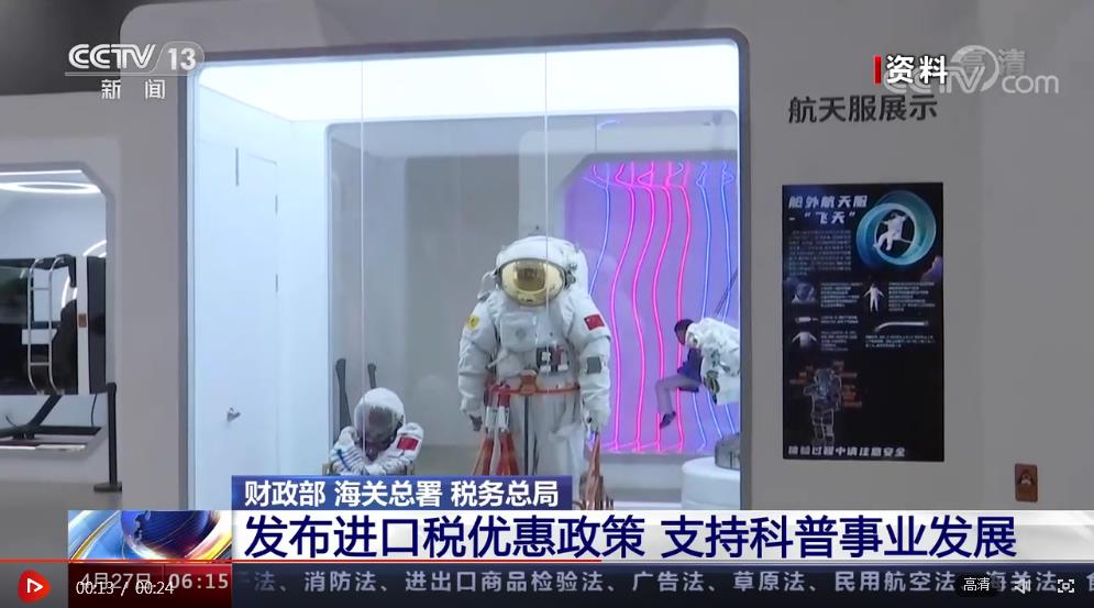 央视网消息:财政部、海关总署、税务总局日前发布进口税收优惠政策,支持科普事业发展。