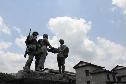 湖南省郴州市汝城县沙洲村的“半条被子”雕塑。(邝西曦摄)