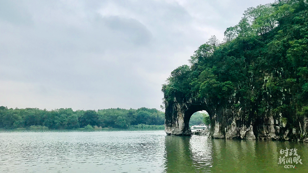 △桂林象鼻山因酷似一头舒卷长鼻、畅饮清流的大象而得名。(总台央视记者李炜拍摄)