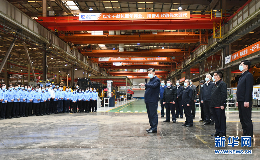 当天下午,习近平来到柳州市考察调研。在广西柳工集团有限公司,习近平先后走进公司展厅、研发实验中心、挖掘机装配厂等,听取企业发展情况介绍,察看主要产品展示,同企业职工和技术研发人员亲切交谈。习近平强调,制造业高质量发展是我国经济高质量发展的重中之重,建设社会主义现代化强国、发展壮大实体经济,都离不开制造业,要在推动产业优化升级上继续下功夫。只有创新才能自强、才能争先,要坚定不移走自主创新道路,把创新发展主动权牢牢掌握在自己手中。要坚持党对国有企业的全面领导,坚持加强党的领导和完善公司治理相统一,在深化企业改革中搞好党的建设,充分发挥党组织在企业改革发展中的领导核心作用。
