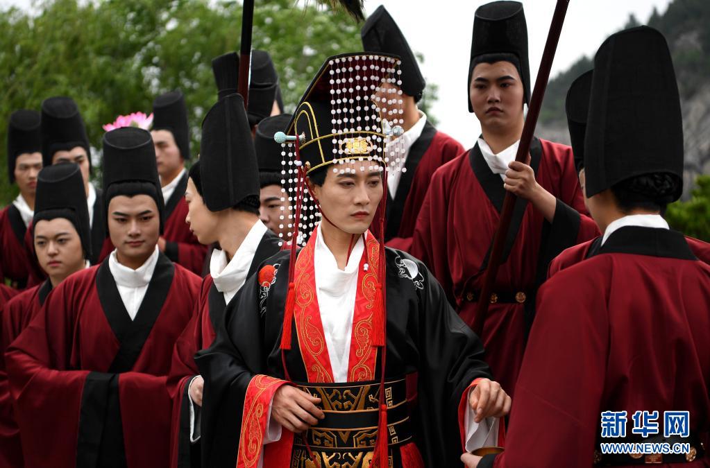 演员在洛阳龙门石窟景区礼佛台演绎《魏孝文帝礼佛图》(4月25日摄)。新华社记者李安摄
