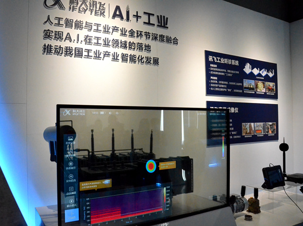 西海岸新区科大讯飞未来港内展示的通过分析机械异响诊断机械故障的技术。人民网记者 孙博洋摄