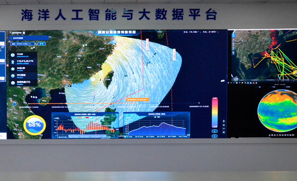 西海岸新区海洋大科学中心里的海洋人工智能与大数据平台。人民网记者 孙博洋摄