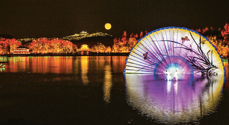 图为2016年9月4日,在西湖湖面举行的G20杭州峰会文艺演出《最忆是杭州》。这场艺术盛宴,向世界传达出融合共处的美好愿景,传递着中国的文化自信。 视觉中国供图