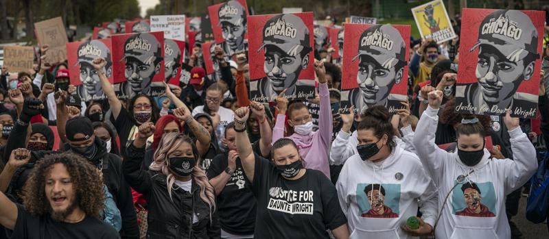 据美国媒体报道,当地时间5月2日,美国明尼苏达州非洲裔男子当特·赖特(Daunte Wright )遭警察枪击身亡案件再次引发游行示威活动。数百名示威者与受害者家属围绕案发地布鲁克林中心进行游行,他们高喊当特·赖特的姓名,用车载空气清新剂拼写出赖特的名字,呼吁对警察系统进行改革并且对涉事前警察金伯利·波特(Kimberly Potter)提起更严厉的指控。