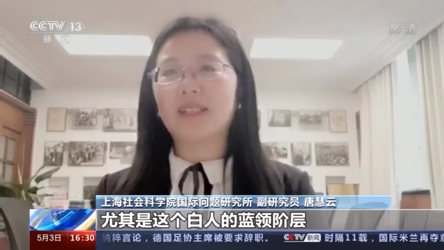 上海社会科学院国际问题研究所 副研究员 唐慧云:白人的危机是一种多种危机的叠加,尤其是在金融危机之后,白人就很多陷入了贫困,尤其是这个白人的蓝领阶层。过去这个蓝领阶层是中产阶级,在金融危机之后,很多白人就陷入贫困、酗酒,自杀率都比较的高。