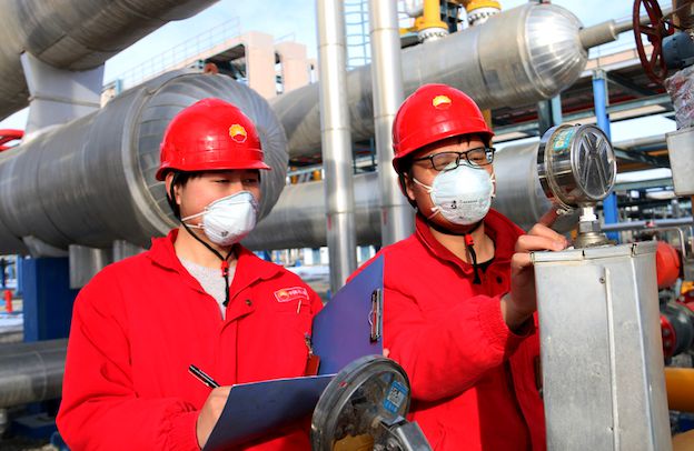 △塔里木油田公司的两名青年职工在气田巡检。