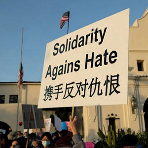 资料图片:当地时间2021年3月20日傍晚,在美国加利佛尼亚州洛杉矶的圣盖博大剧院前,人们举行了烛光晚会。悼念3月16日在佐治亚州亚特兰大市一起枪击案中死去的8名受害者。同时也反对针对亚裔及华裔的种族仇恨犯罪。(人民视觉)