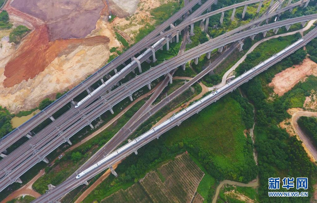 动车在广西南宁市屯里大桥上行驶(2018年7月1日摄,无人机照片)。