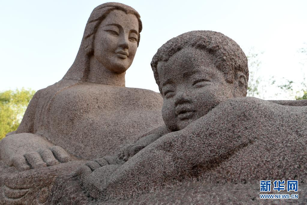 这是在兰州市七里河区黄河之滨拍摄的黄河母亲雕塑(5月8日摄)。