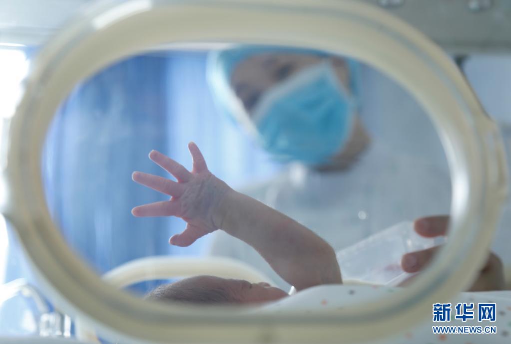 5月11日,在河北省邢台市南和区人民医院新生儿科,一名护士在护理新生儿。