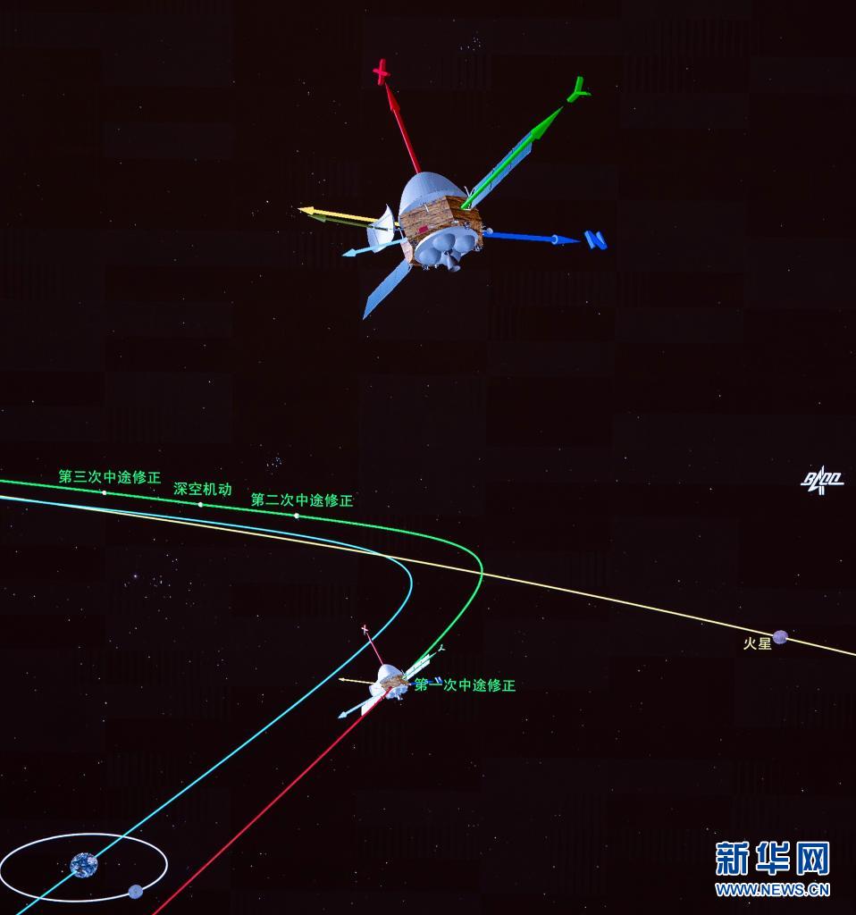——轨道修正,让天问飞得更稳。天问一号先后完成了四次中途轨道修正,对3000N发动机及120N、25N推力器的在轨性能、工作模式进行了全面验证。