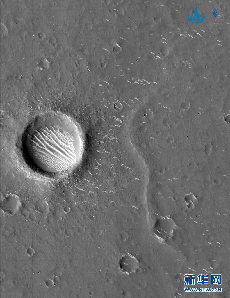 2021年3月4日,国家航天局发布3幅由我国首次火星探测任务天问一号探测器拍摄的高清火星影像图,包括2幅全色图像和1幅彩色图像。这是国家航天局公布的高清火星影像图。新华社发(国家航天局供图)