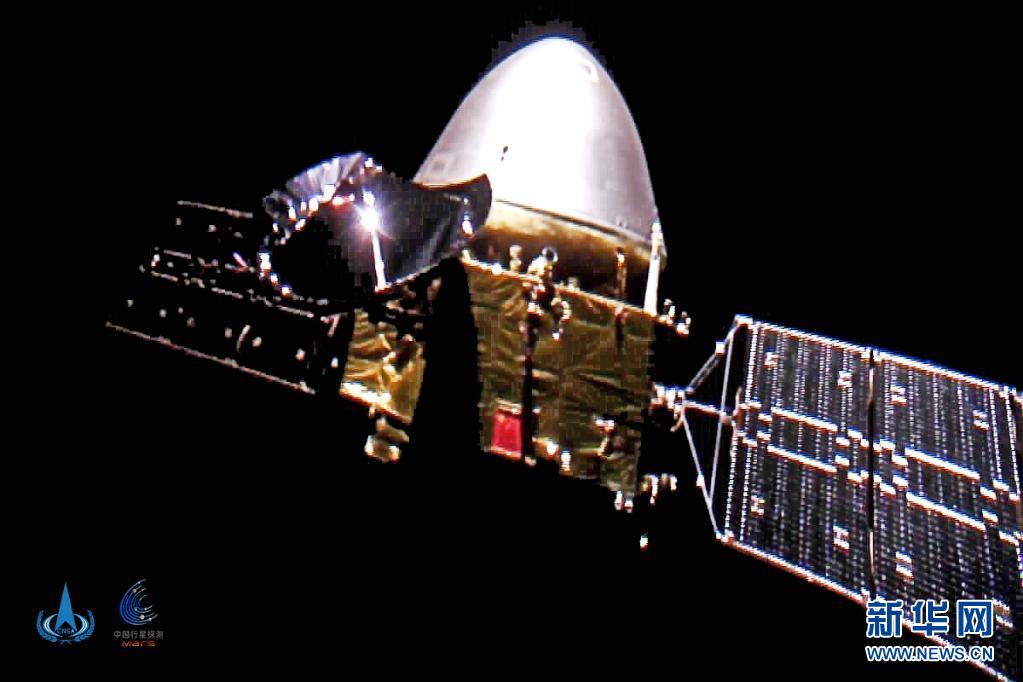 2020年10月1日,国家航天局发布我国首次火星探测任务天问一号探测器飞行图像。新华社发(国家航天局供图)
