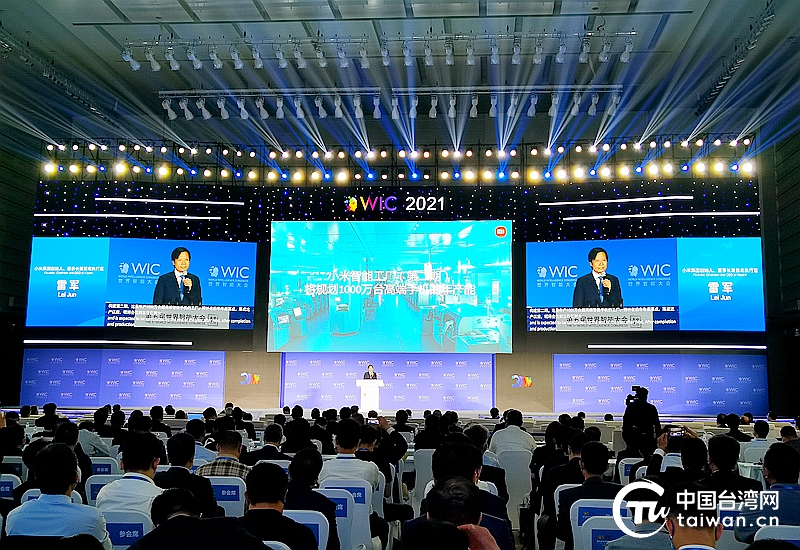 小米集团创始人、董事长兼首席执行官雷军在高峰会上进行演讲。(中国台湾网 张亚静 摄)