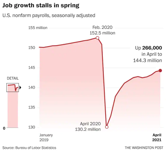△相比疫情前的高点,美国非农就业人口还有800万的缺口(图片来自《华盛顿邮报》)