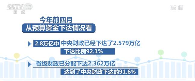 今年前四月,从预算资金下达情况看,整体上超过90%的直达资金下达到基层和使用单位,2.8万亿中,中央财政已经下达了2.579万亿,下达比例92.1%;省级财政已分配下达2.362万亿,达到了中央财政下达的91.6%。数据显示,在支持保居民就业方面,资金支出超过110亿元,支持落实就业优先政策,稳定就业总体形势。在支持保市场主体方面,据不完全统计,相关惠企资金累计支出超过1500亿元,惠及各类市场主体达28万家,激发了市场主体活力,增强了企业发展后劲。在支持保基层运转方面,县级基本财力保障机制奖补资金支出超过1800亿元,切实保障基层保工资、保运转等重点支出需要,兜牢基层“三保”底线。