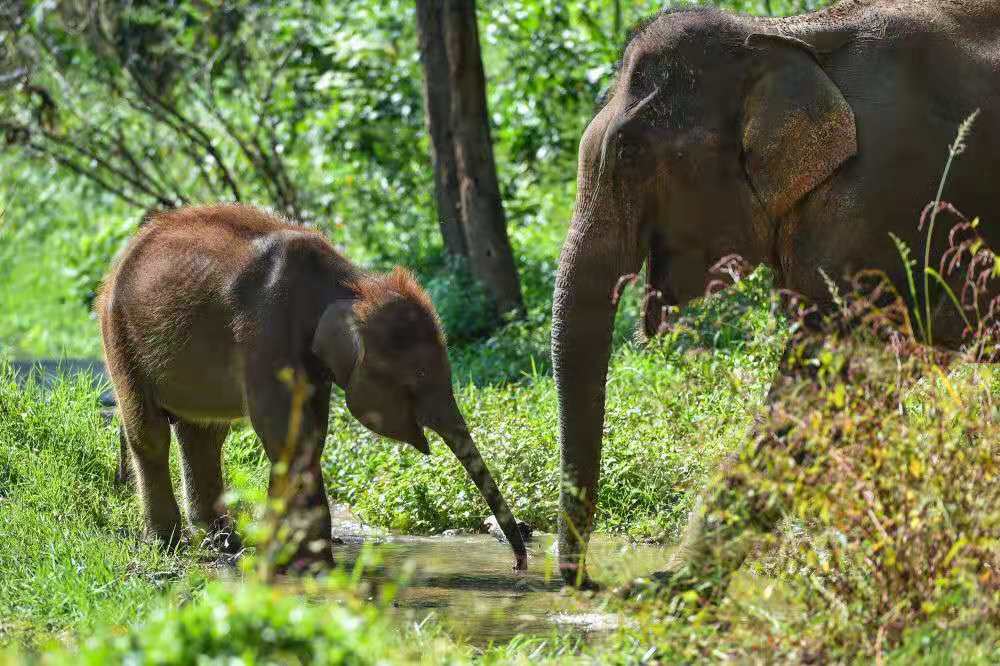 ▲ 2019年11月13日,在云南亚洲象种源繁育及救助中心附近,两只亚洲象参加野化训练。