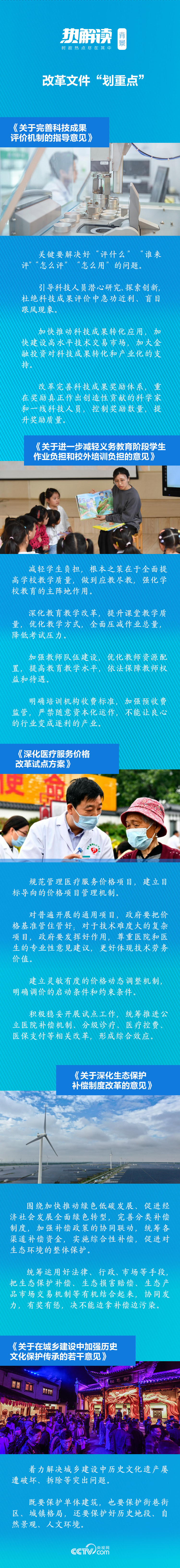 除了教育问题,中央全面深化改革委员会第十九次会议还审议通过了《关于完善科技成果评价机制的指导意见》、《深化医疗服务价格改革试点方案》、《关于深化生态保护补偿制度改革的意见》、《关于在城乡建设中加强历史文化保护传承的若干意见》等文件,在科教文卫和生态保护等人民群众十分关切的领域都进行了重点部署。